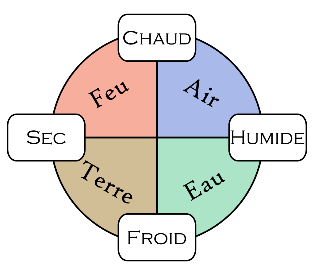 • La matière est constituée d'eau, d'air, de terre et de feu.